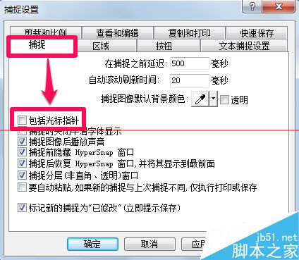 9、点击选择捕捉,将包括光标指针前面的对勾去掉,确定之后再截图就不会显示光标了。