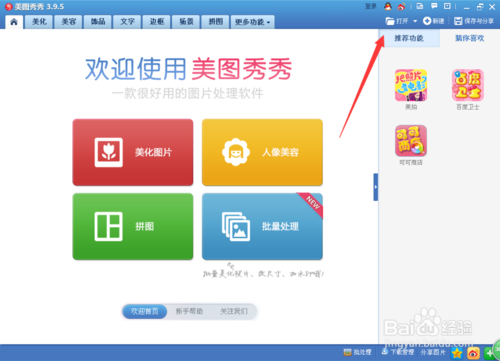 1、打开美图秀秀。点击右上角的“打开”,找到你需要裁剪的图片打开。