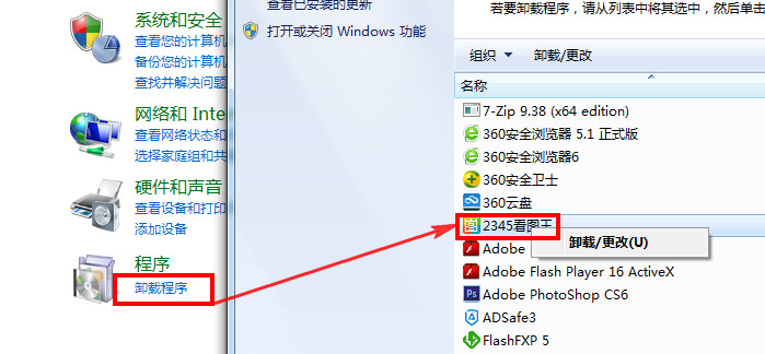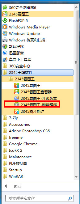 方法三:点击“开始”==2345王牌软件==2345看图王-卸载程序