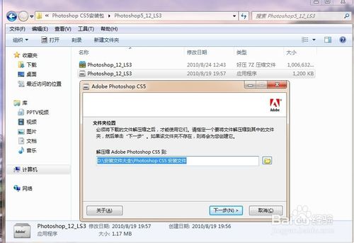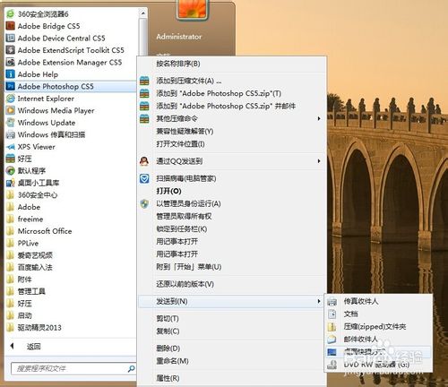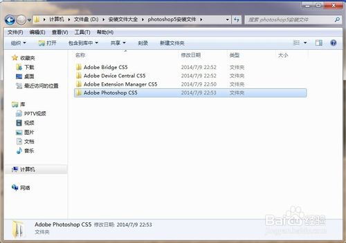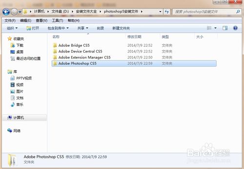 10、安装完后,打开安装文件夹中的Adobe Photoshop CS5文件夹,点击打开Adobe Photoshop CS5文件夹找到Photoshop应用程序。右单击Photoshop应用程序发送桌面快捷键到电脑桌面。(或单击开始按钮>>所有程序>>Adobe Photoshop CS5>>发送桌面快捷键到电脑桌面)