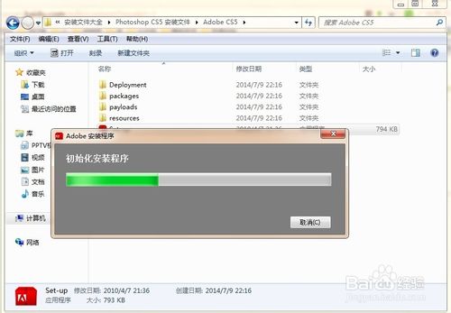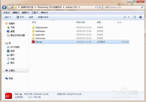 3、解压完后,点击打开Adobe CS5文件夹,找到Set-up应用程序双击打开。