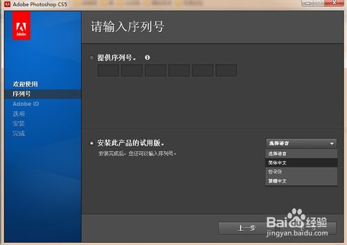 6、选择安装此产品的试用版,选择语言简体中文,点击下一步。