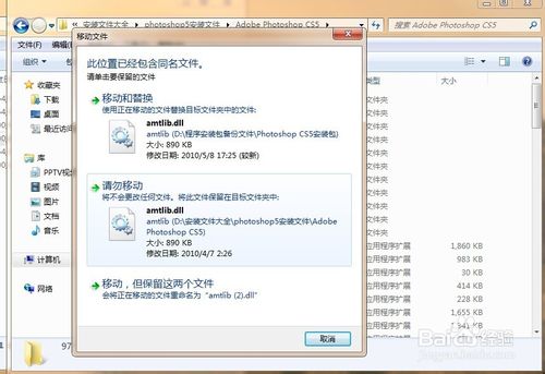 13、开始破解官网版photoshop5(PS5),把解压出来的amtlib.dll文件放到安装根目录的Adobe Photoshop CS5里面替换掉原文件,重启Photoshop CS5软件就会完成破解。