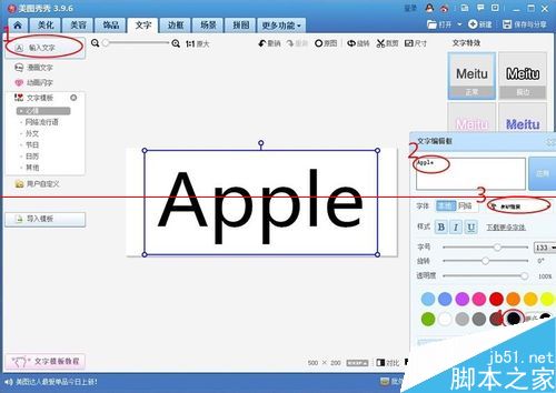 4、点击“输入文字”, 在文字编辑框中,字体:微软雅黑,颜色:黑色。