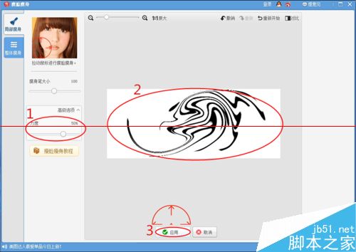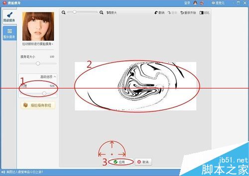 8、选择力度为50%,以画园的方式扭曲,多扭曲几次,点击“应用”。