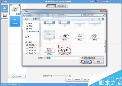 14、点击“添加图片”,图片添加顺序为素材二-素材五,素材五-素材一。