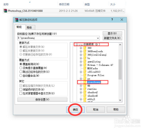 等下载完成后,找到所下载的压缩包,右键单击解压,路径指向你D区中新建的文件:psanzhuang,然后点击确定。如下图: