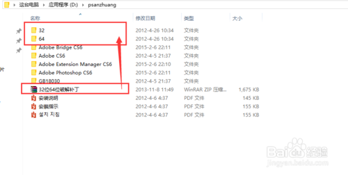 8、然后我们再回到解压文件的目录里,找到“32位64位破解补丁”这个还没有解压的压缩包,并解压它,得到两个文件:32和64命名的文件。如图: