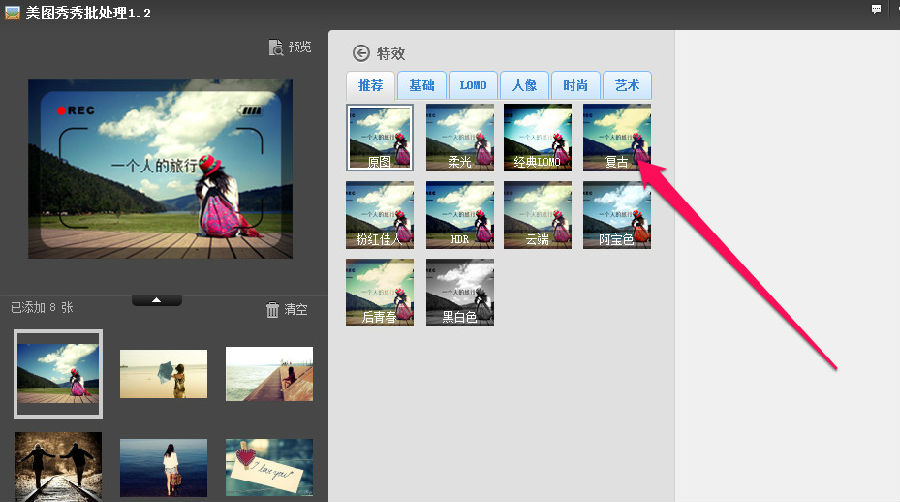 首先我们先对照片进行特效处理,我们还可以进行一些加水印或者加其效果等等