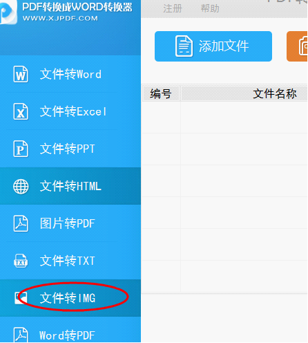 2、双击PDF转换器图标进入操作界面:在转换模式中选择“文件转IMG”,随后单击“添加”按钮>桌面>PDF文件>打开,倘若下载了批量的PDF文件,也可一次性上传至列表中;