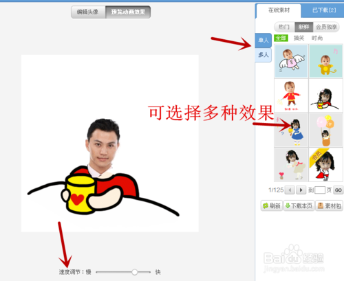 5、抠图完成,选择一种特效,点击预览效果。可以在右边选择多种特效。直到自己非常满意,点击保存。