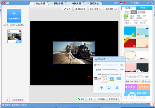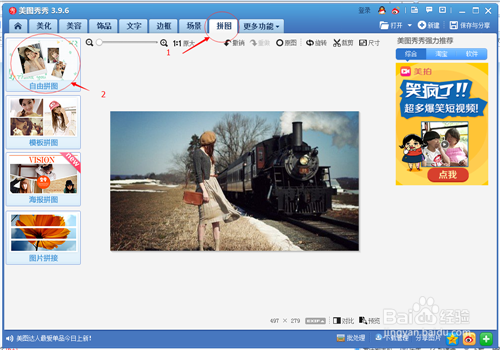 然后在上面菜单栏找到拼图菜单,在左边选择自由拼图。