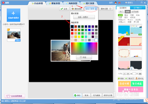 进入自由拼图页面,选择自定义背景,在下来颜色中选择黑色。