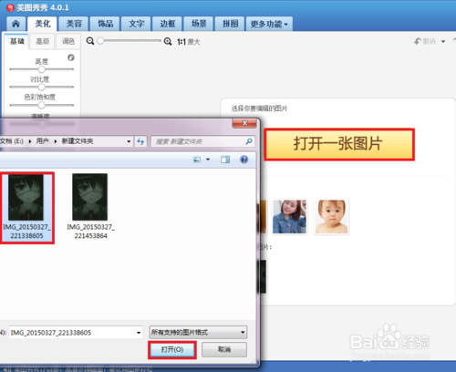 打开一张图片,选择你想要编辑的人物图片,点打开。