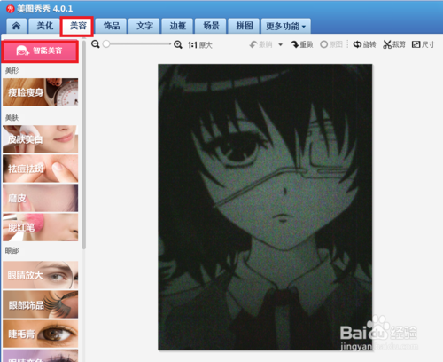 选择智能美容里的清晰,点击应用,图片总算清晰多了,虽然看起来还是很渣的样子……