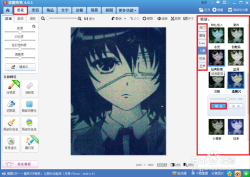 选择美化里的特效,你可以在众多特效里给人物自由选择一个特效,选好后点确定。