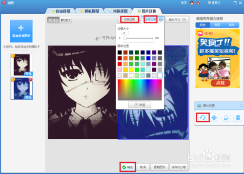 我选择了横版,经过一顿翻转,然后把边框大小设置为0,点确定,图片基本拼接完毕。