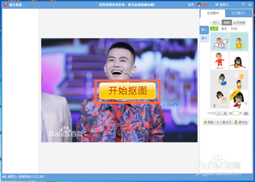 3、选好图片之后,就开始抠图吧~点击“开始抠图”,选一下左上角的放大窗口,放大到可以清晰抠图又不会缺失脸部的程度。
