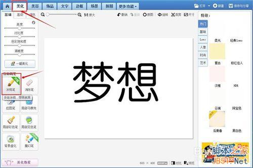 调整好位置大小之后,选择“美化”菜单栏,在左边选择“涂鸦笔”
