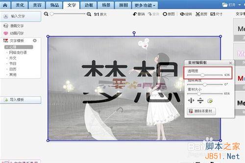 调整好大小和位置后,要调整透明度,按照自己的需求调整亮点或是暗点,越透明文字就显示越清晰。