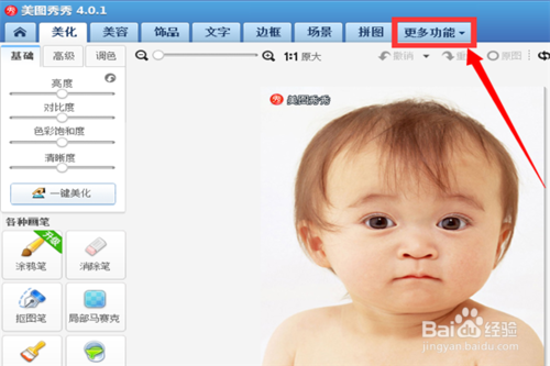 3、图片添加之后就是如下界面,然后单击“更多功能”。