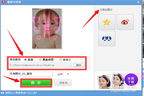 10、然后选择要保存的位置,也可更改图片名,再单击“保存”。你也可以将其分享到你的社交圈。