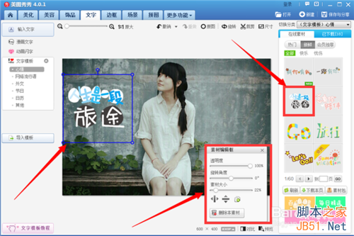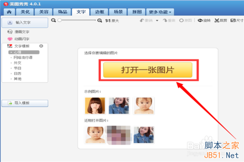 然后进入添加特效的页面,这里,你可以使用美图秀秀自带的文字模板,还可以输入自己想要的文字。