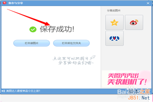 之后对话框会提示你保存成功,如果你不需要再做其他的操作,你就可以退出美图秀秀了。快去看看你的图片吧。