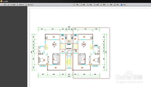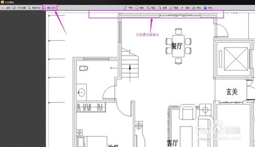 我们不需要把整张图纸都打印出来,而是只打印左边的客厅和餐厅。操作:点击工具栏的打印工具,会转入一个打印页面,我们会发现此时的图纸非常小。