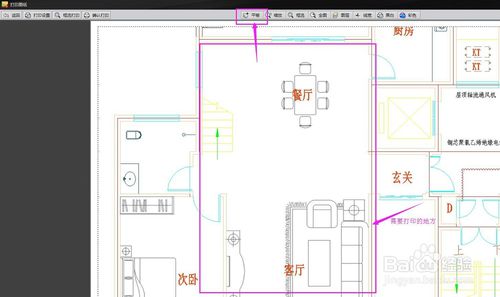 再选择上面的框选打印,框选出左边的客厅和餐厅,这时候打印界面上的客厅和餐厅已经是最大了。如图1: