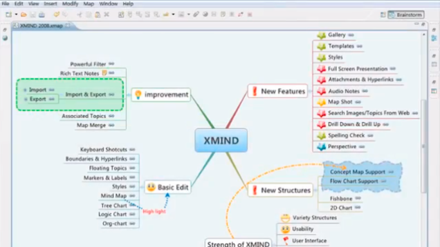 Xmind已经面世有相当长的一段时间了,且在之前一轮投票选择最佳思维导图软件的时候就已成功跻身前五,在这次的投票中,Xmind依然倍受欢迎。Xmind特别灵活,可以在任何桌面系统上完美运行,便于用户轻松通过多种样式、图表和设计形式组织想法和思维。用户可以使用简单的思维导图,也可以选择“鱼骨图”样式的流程图等等,还可以添加图片、图表、链接等等都对应的主题上。如果你是项目经理,还可以使用Xmind内置的甘特图管理任务,最重要的是,Xmind是一款免费的开源软件,当然如果有充足的预算,可以使用Xmind Plus和Pro版本,获取更多的功能。