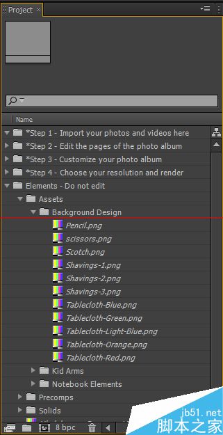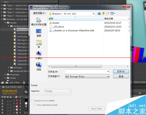 2、如果文件打开以后 在AE中显示为彩色格子,就是文件缺失