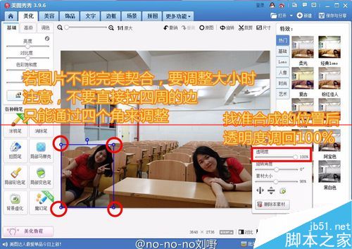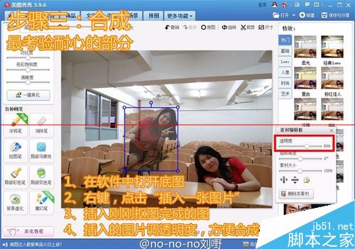 4、两个人还不够热闹,可以继续添加,步骤跟前面一样。注意修缮过渡不自然的部分可以用涂鸦笔、消除笔以及磨皮笔进行。当然,一键美化也不是不行