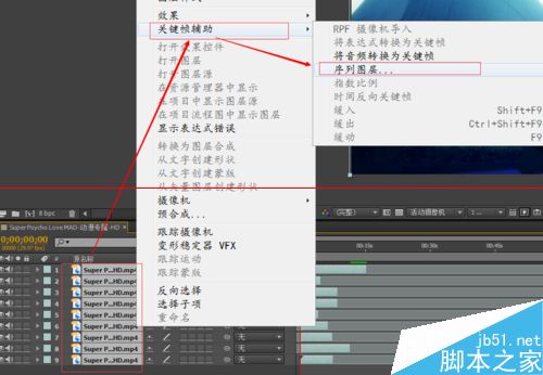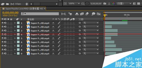 使用AE快速的将图层首尾相接排序完成。