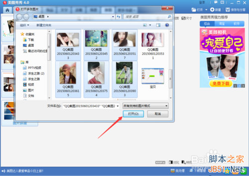3、点击“添加图片”,把需要拼凑在一起的图片按住鼠标左键拖拉选中,然后点击“打开”。