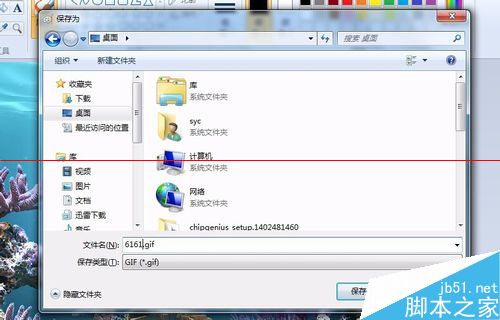 2、键盘按Alt+F选择另存为gif格式,鼠标点击桌面(不一定要保存到桌面,看习惯),重命名是方便认出来的,我是把它命名为6161.gif