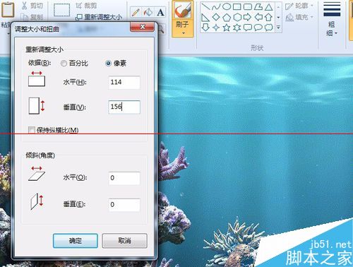 4、同步骤一,找到刚才重命名的那个文件,鼠标右键---打开方式---(选择)画图,按键盘上的Ctrl+w,点选像素,输入水平114,竖直156并且去掉,保持纵横比前面的钩钩,确定