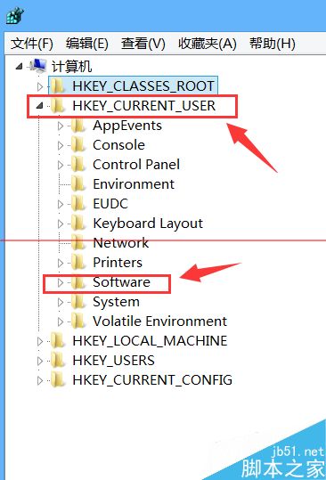 进如注册表之后打开【HKEY_CURRENT_USER】下的【Software】