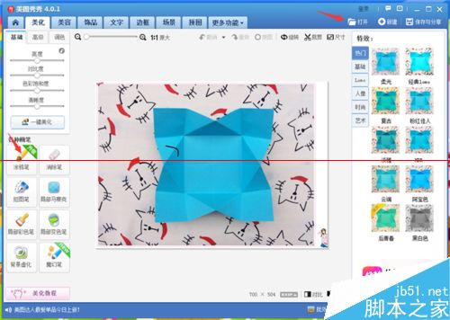 1、用美图秀秀打开你所要处理的图片,在左下方我们可以看到一个“涂鸦笔”,然后点击。我们先来学习如何给图片加上虚实线。没有美图秀秀软件的可以到网上下载哦,很方便的。
