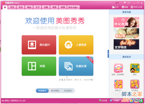 1、打开”美图秀秀“软件。