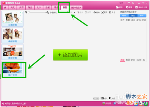 2、点击“拼图”功能,选择“图片拼接”。