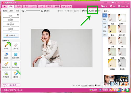 点击”美化“,选择”裁剪“功能。