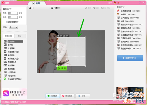 拖拽白色的框可以调节整个要裁剪图片的大小和位置。