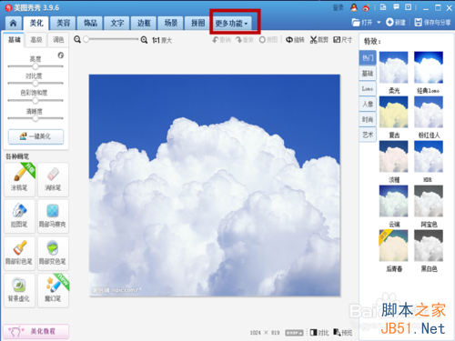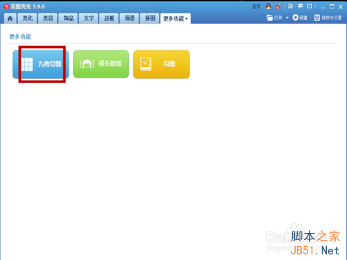 2、点击“更多功能”,进入一个新的界面,点击“九格切图”进入切图界面。