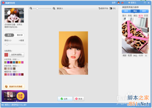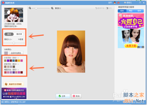 5、在这个界面可以调节画笔的粗细,可以选择想要改变的部位与颜色。