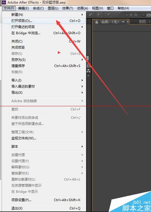 2:选择 文件 -> 打开项目 命令,打开项目文件
