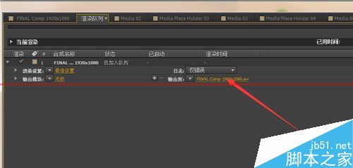 按快捷键 ctrl + m 添加到渲染队列,效果如下图