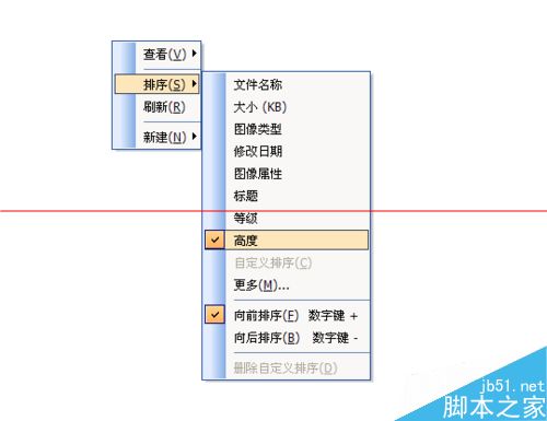 6、然后我们再右键就可以看见排序为高度,简单吧