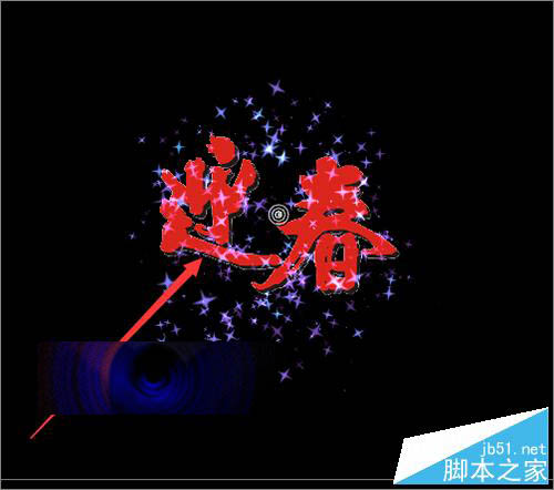 11、回到界面中,当点击播放后,就可以看到这个礼花爆炸后出现的文字由无到大的效果,正是我们想要的效果。把它调整好之后,如果不做其它的更改的话,就可以直进行输出前的设置。(在粒子中把文字替换之后,根据需要可以稍微的调一下文字的大小及其它的一些参数。)