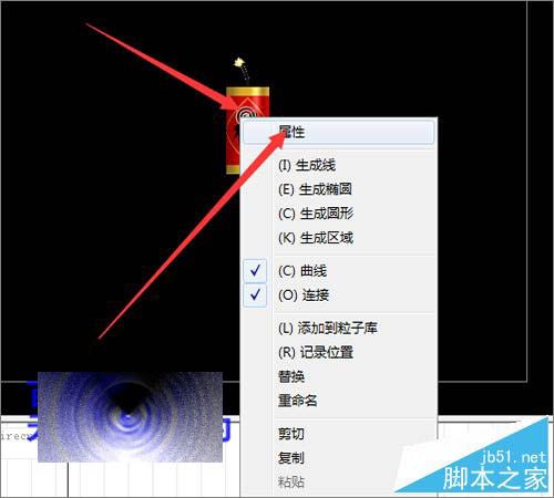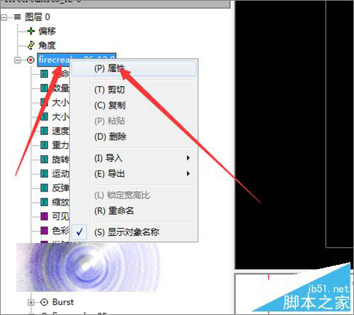 3、粒子位置移动好之后,接下来就要把点击打开粒子的属性。也可以直接在粒子上面点击右键,选择属性。也可以在左边的粒子上面右键点击打开它的属性。